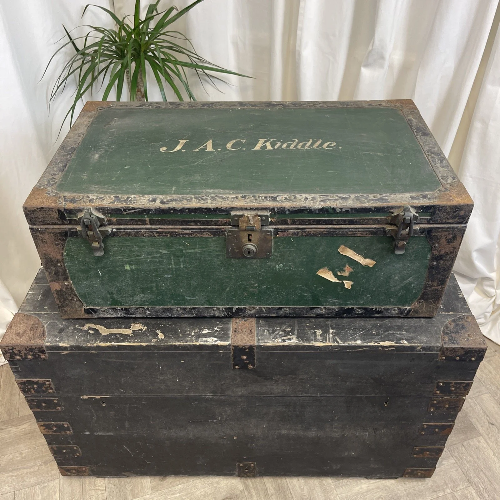 Vintage Luggage Trunks X2 WW1 Soldier Lt J.A.C.Kiddle Shipping Steamer Boxes