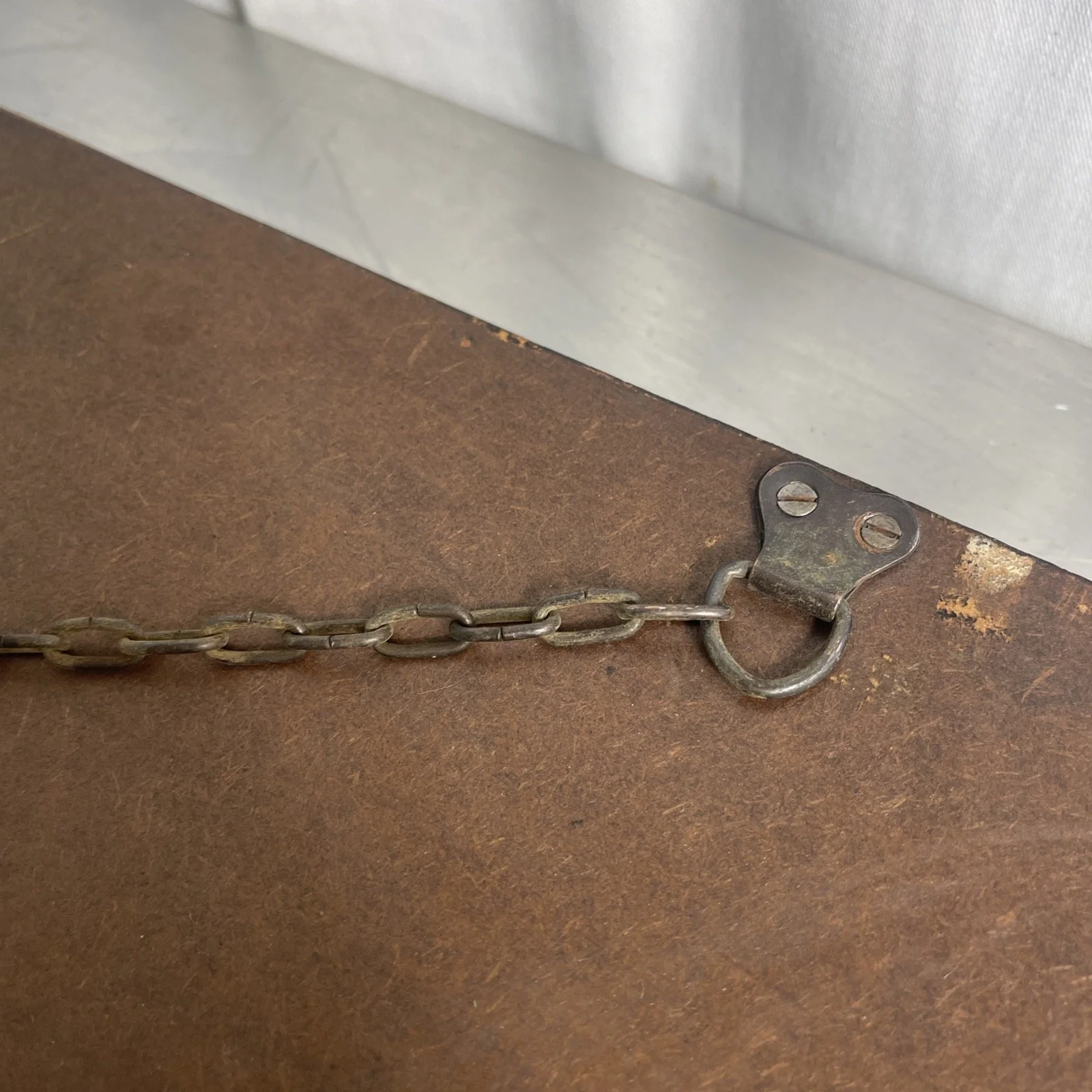 This vintage mid-century teak wall mirror is a stylish and unique addition to any home. With a rectangular shape and a frame finish of mirrored glass, it exudes mid-century modernism style. The teak frame adds a touch of natural warmth, while the heavy chain detail adds a quirky and rustic element. Measuring 72x44cm, this original antique piece from the 1950s is a statement piece that will bring character to any room